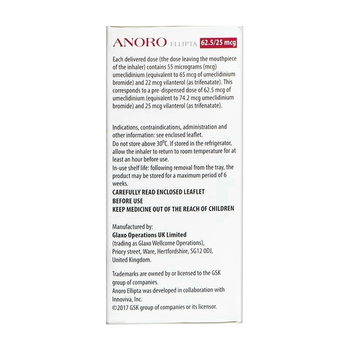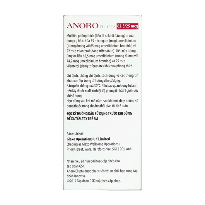 Anoro Ellipta 62.5/25mcg GSK 30 liều (Umeclidinium Vilanterol)
