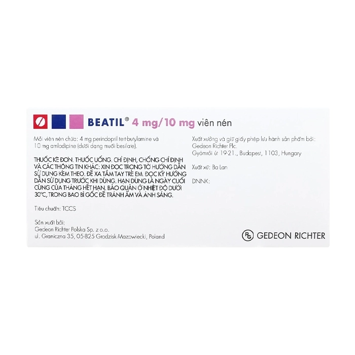 Beatil 4mg/10mg Gedeon Richter 3 vỉ x 10 viên (Perindopril Amlodipin)