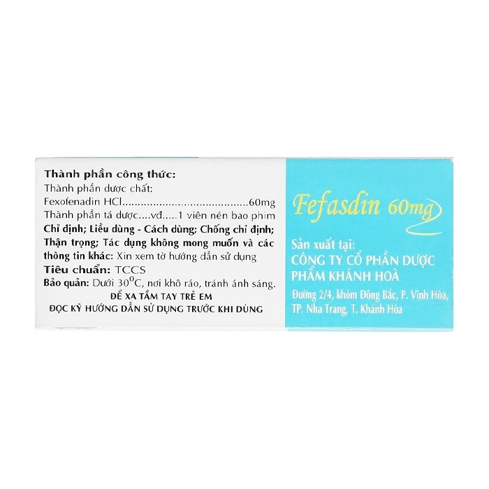 - Fexofenadin hydroclorid: 60mg
