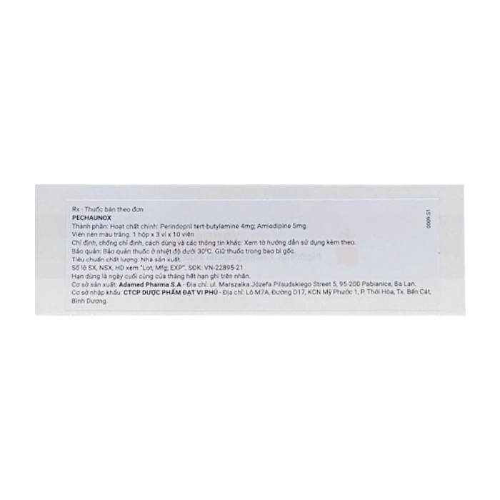 Pechaunox 4/5 Adamed 3 vỉ x 10 viên (Perindopril Amlodipin)