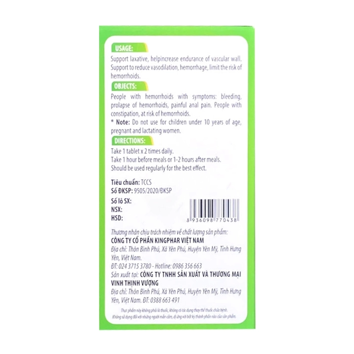 Công dụng của Qee Tree Kingphar 40 viên - Hỗ trợ giảm giãn mạch, trĩ