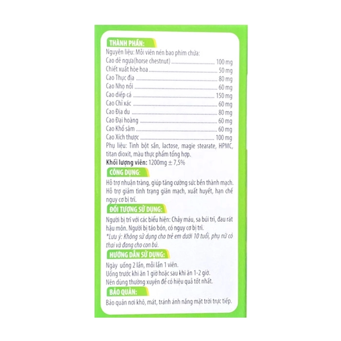 - Hỗ trợ giảm tình trạng giãn mạch, xuất huyết, hạn chế nguy cơ bị trĩ.