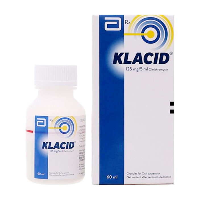 - Trẻ em dưới 12 tuổi: Sử dụng Klacid dạng hỗn dịch dành cho trẻ em. Việc sử dụng clarithromycin dạng phóng thích nhanh chưa được nghiên cứu ở trẻ em dưới 12 tuổi.