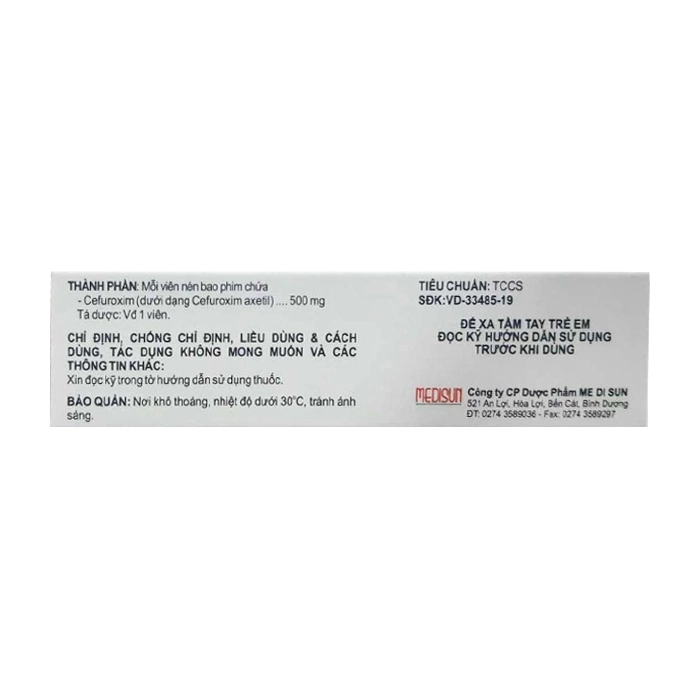 Undtas 500 Medisun 3 vỉ x 10 viên (Cefuroxim)